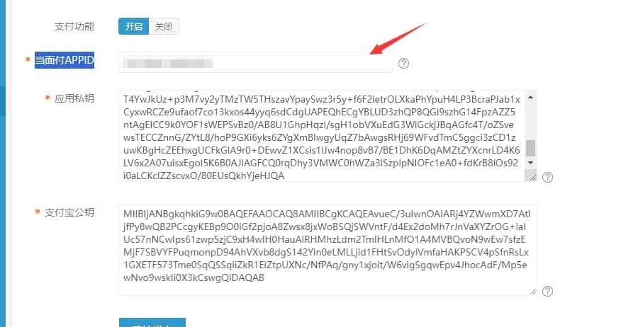 5.5 将支付宝公钥复制并粘贴到网站后台插件中