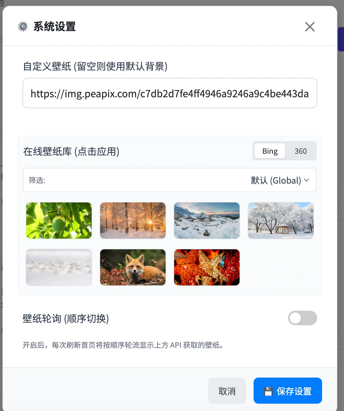 - 提供在线壁纸接口,让你的导航页始终焕然一新。