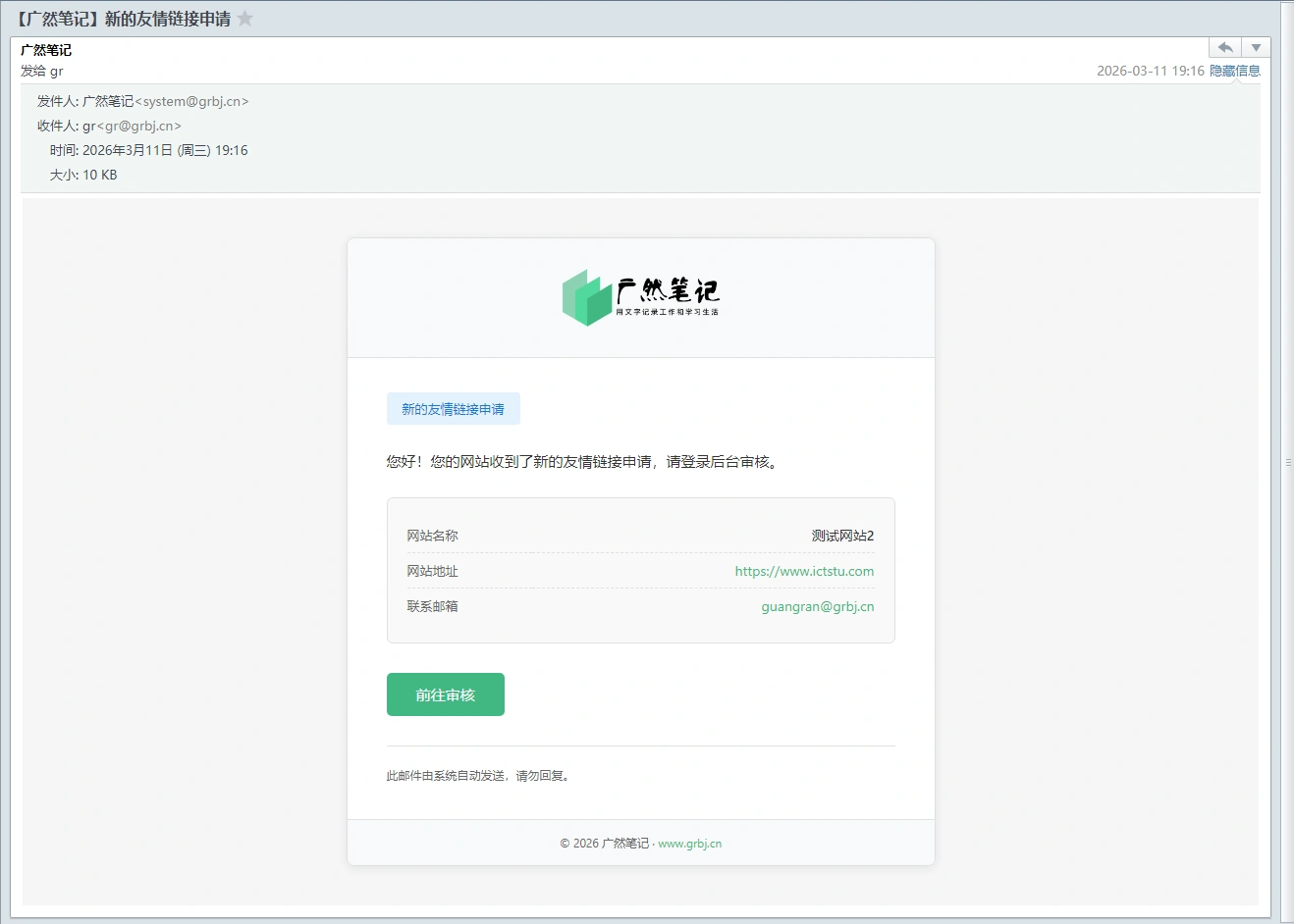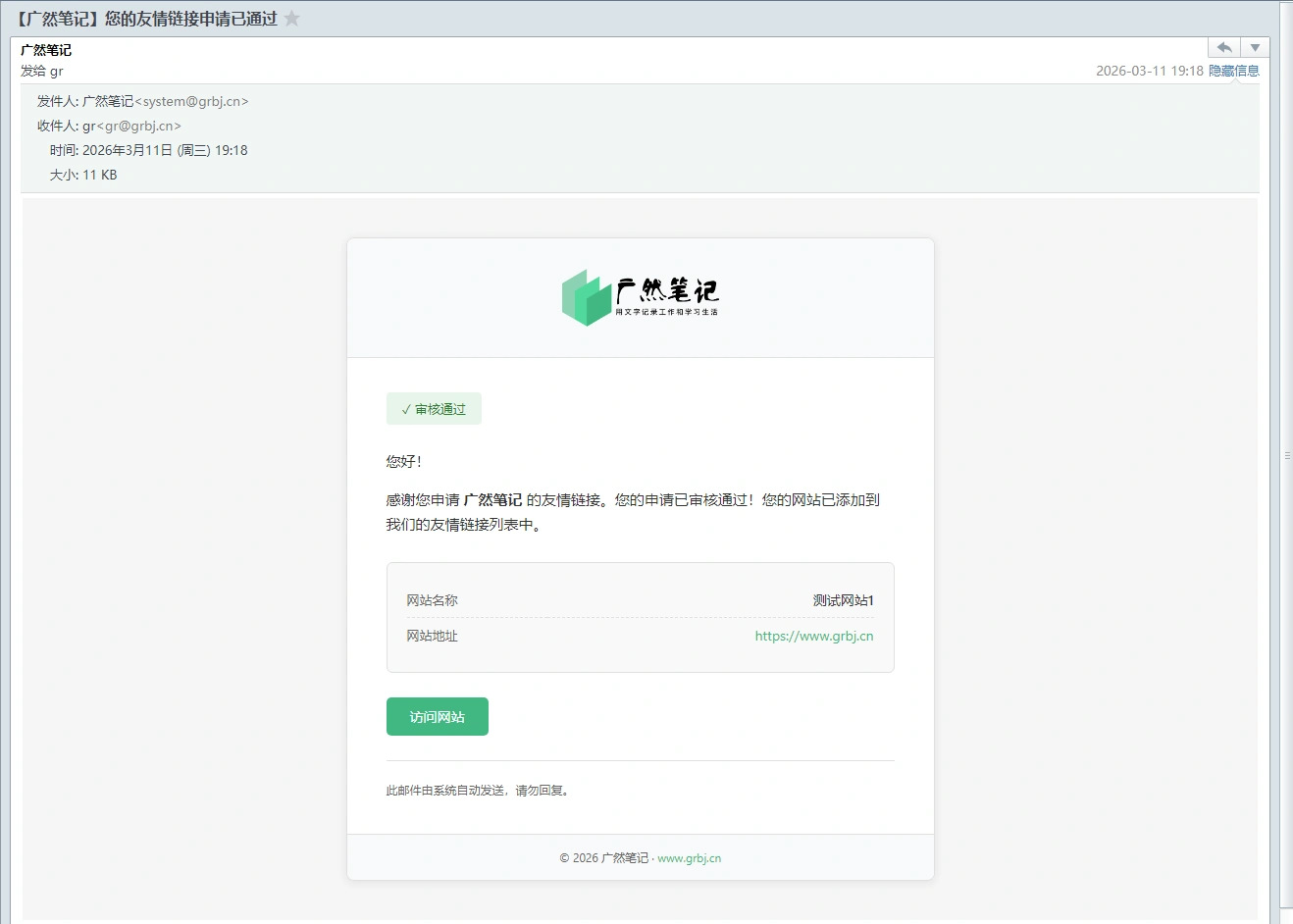 - 访客自助提交友情链接申请,支持前端表单和 Logo 上传